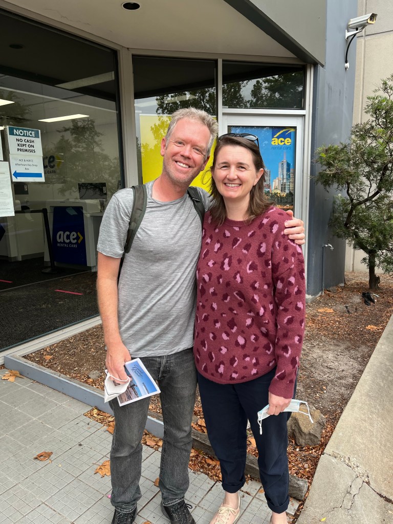 And after two days, fantastic eats, seven Hi-Lo books (thanks to Aelwyn for introducing us to them!), and tons of catching up, we picked up a rental car and were on our way. Thanks, Melbourne. You are wonderful. Thanks, Anna. You’re a great friend.
