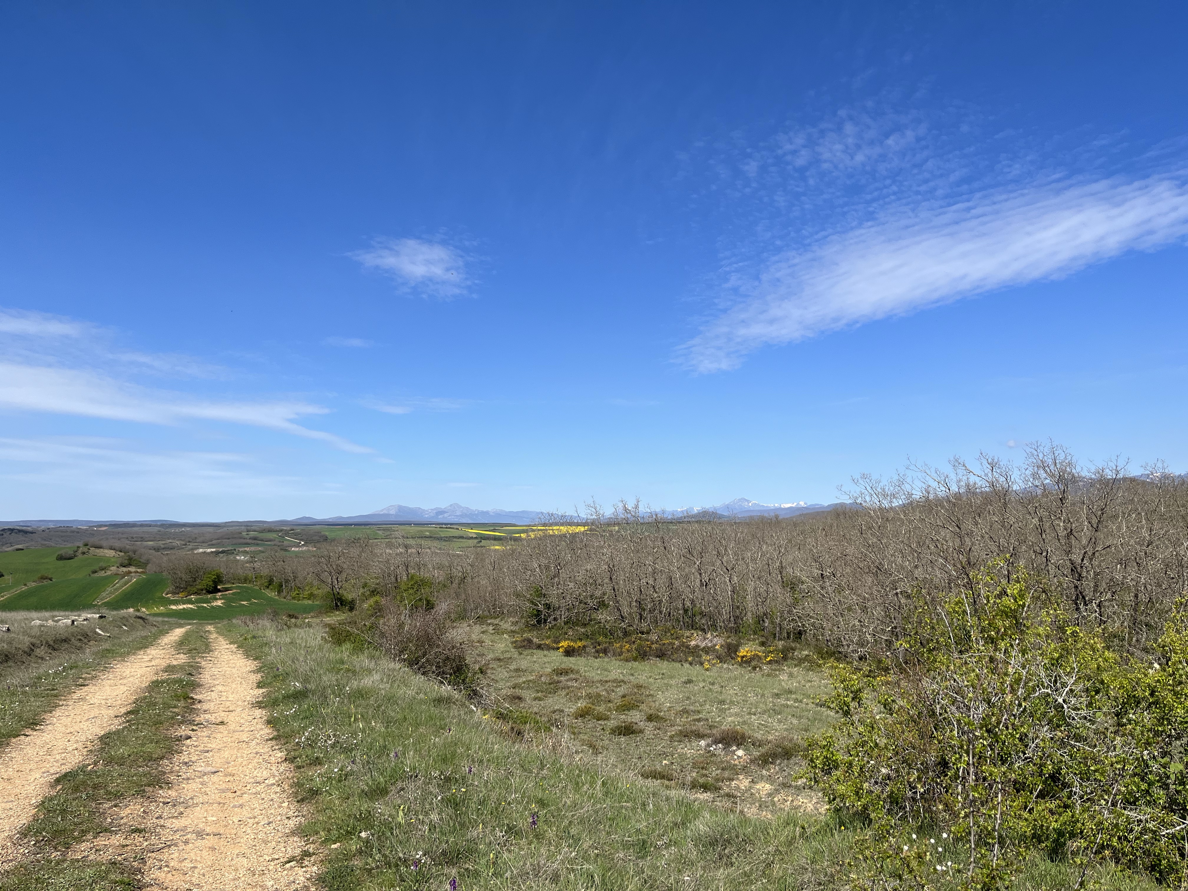 It was great. And then on the last day Jen and her family took us to see something incredible. It was a Sunday walk, not billed as anything too special. We started in a tiny town outside of Aguilar, so small that it had no commerce, just a crumbling church. The walk took us through a thorny path to a larger trail through the hills, with views of yellow-gold rapeseed fields and snowcapped mountains. We walked down through a forested valley and over a river to a small hill…
