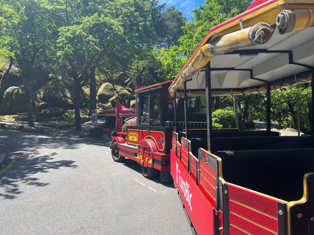 On our last stop in Guimaraes, we stayed in a big farmhouse that was built almost 400 years ago. There were horses and cows on the property, along with a big pool that was too cold to swim in on when we got there, but warmed up (along with the weather) every day we were there. Fiona got to sleep in a beautiful bed with a crown on the headboard. We visited a castle and a palace in town, and got to take a cable car up to the top of a hill where we toured around in a tiny train.