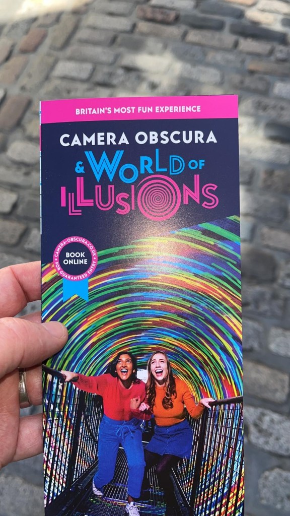 The next morning, chilly and cloudy, was our obligatory visit to Edinburgh Castle, starting with a walk up the Royal Mile to take in all the bagpipers and souvenir shops and delightfully silly tourist attractions (Fi especially liked the funhouse-esque mirrors outside of Camera Obscura.