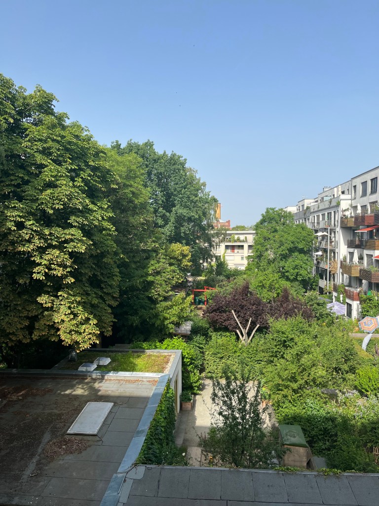 We finally boarded and took off at 4:30pm – almost three hours late. We gave Fiona gum for the flight and a bunch of cartoons to watch, and she got through without pain. We landed in Berlin and got through passport control without much difficulty, found our luggage, and got a taxi to the apartment, where Cate was waiting for us with a smile and a key.