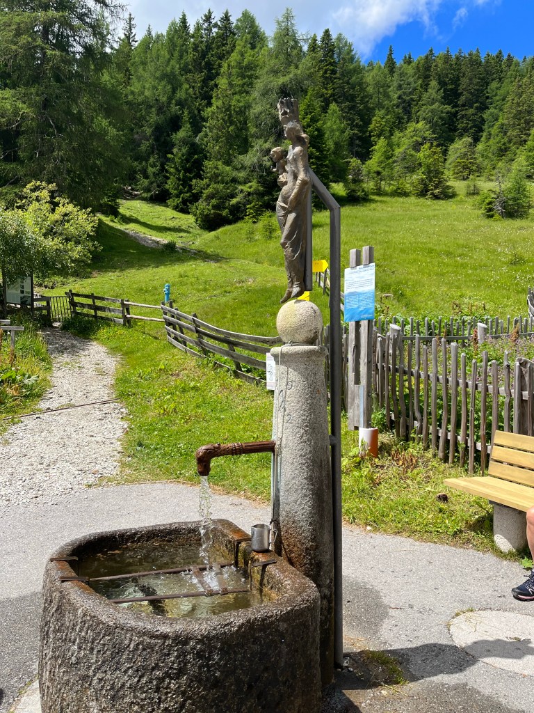 Hiking day! We took the Serlesbahn cable car to Serles, then walked to Maria Waldrast, which may or may not be the highest monastery in Europe. Either way, it’s a wonderful, relatively easy hike. The monastery is a church, distillery, inn, and restaurant. We availed ourselves of an amazing lunch of spaetzle and beer, then hiked back via an upper trail that was better, quieter, and more beautiful than the way we came. And included dozens of curious cows.