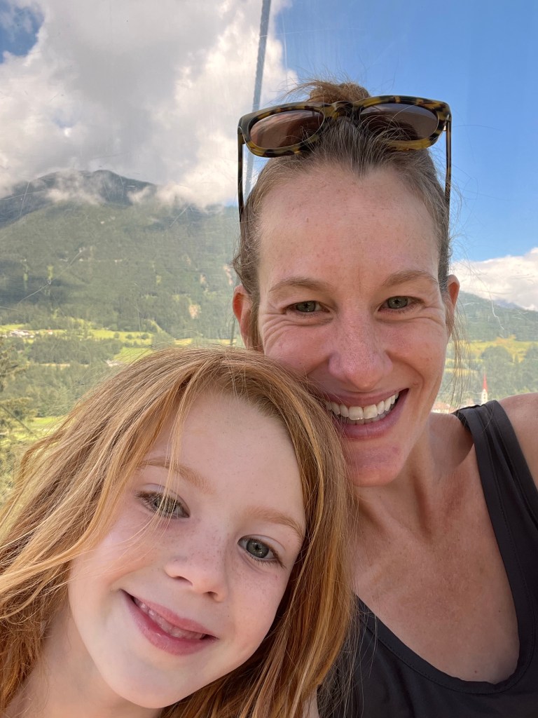 Stubai is in a part of Austria called Tyrol, which is surrounded by big, beautiful mountains called the Alps. Fiona did a lot of cool stuff there, including going on some big hikes (one 1000 feet up!) and playing in playgrounds with seriously incredible views.