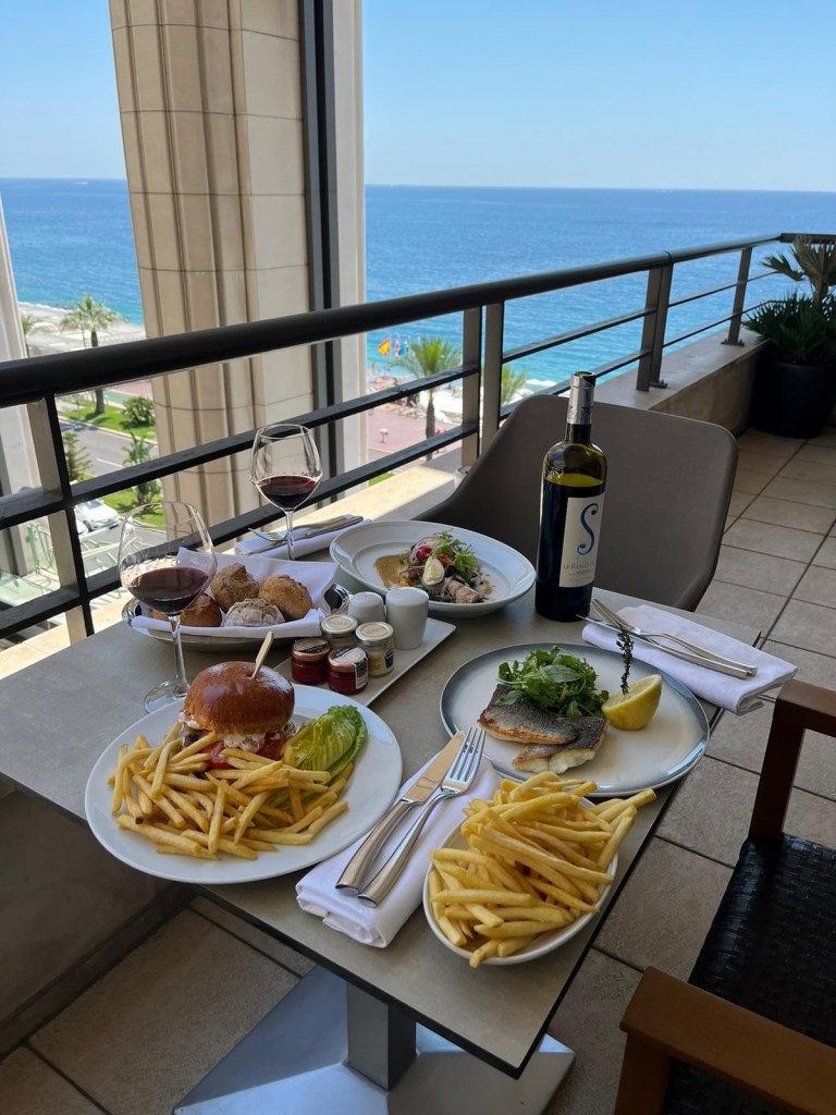 - Burger n’ pomme frites at the Hyatt Regency in Nice. Sure, our room was ridiculous and the view sublime, but the food was also on point. Mmm, those fries.