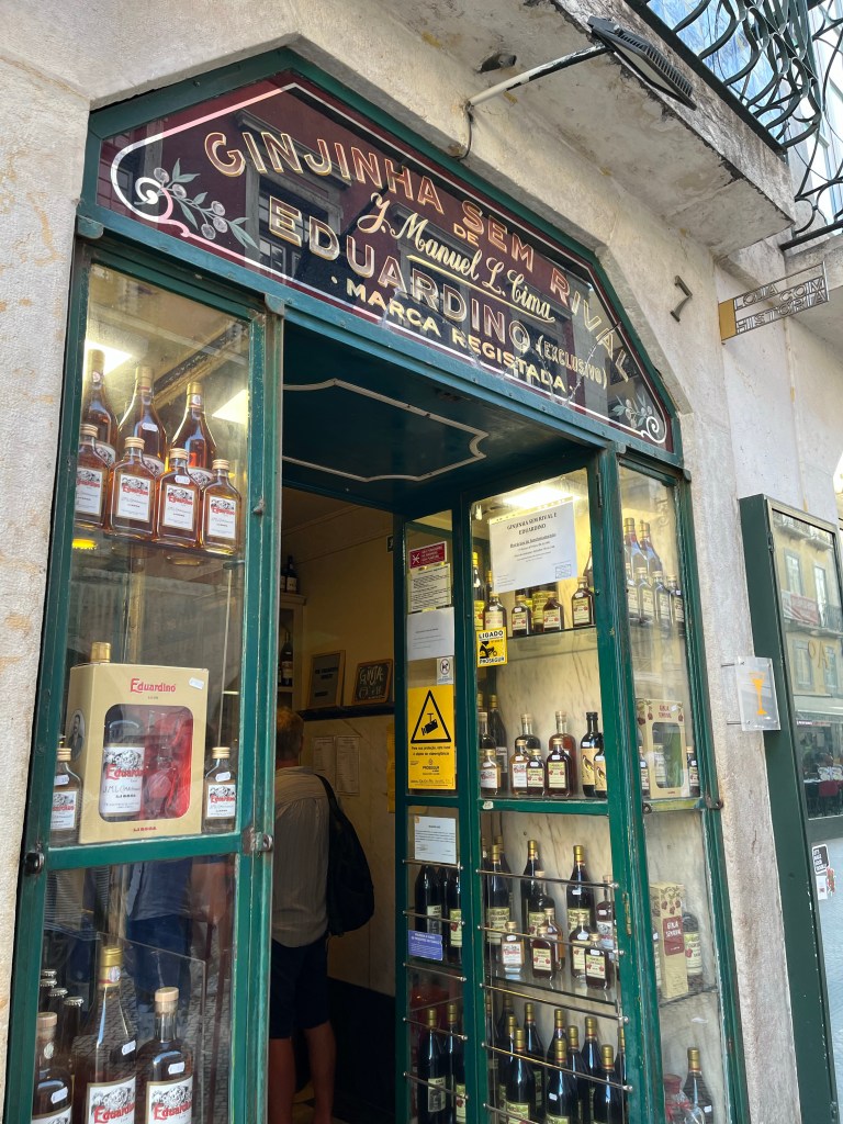 - Ginjinha in Lisbon. Not technically a food – it’s a cherry liqueur. You order it from a bar (or, in our case, a bar that also retails), and drink it by the shot with a sour cherry at the bottom. It’s a rare treat. Also, as far as we could tell, the bars that serve it only serve ginjinha. No martinis for you, pal.