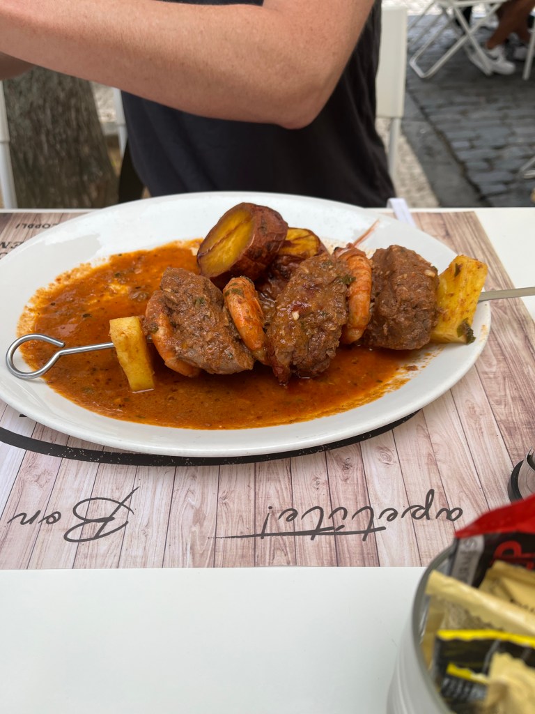 - Espetada Acoriana at Churrasco, Ponta Delgada. Slow-cooked beef, grilled shrimp, and pineapple on a skewer. It was like surf n’ turf al pastor.