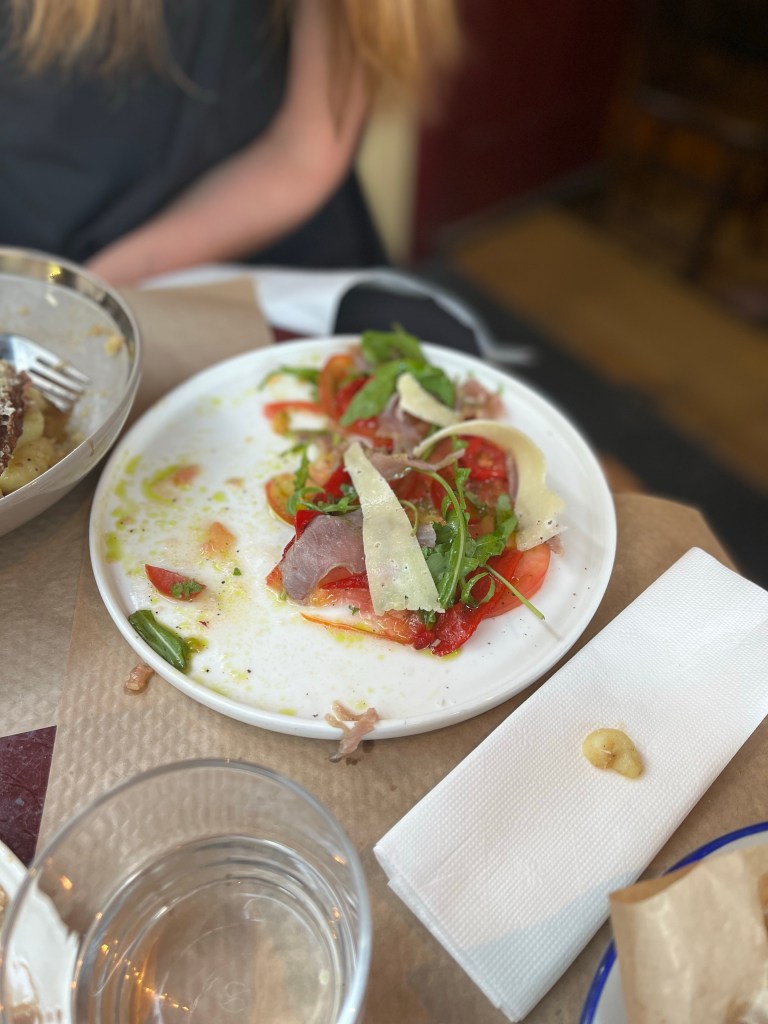 - Our last dinner in Europe at Bistro Louvre Michaelense in Ponta Delgada. Everything was fantastic, including a delicious parmesan/tomato/arugula salad, and an amazing gnocchi dish. We hung out here for nearly three hours – what a perfect way to end the European – and international – part of our trip!