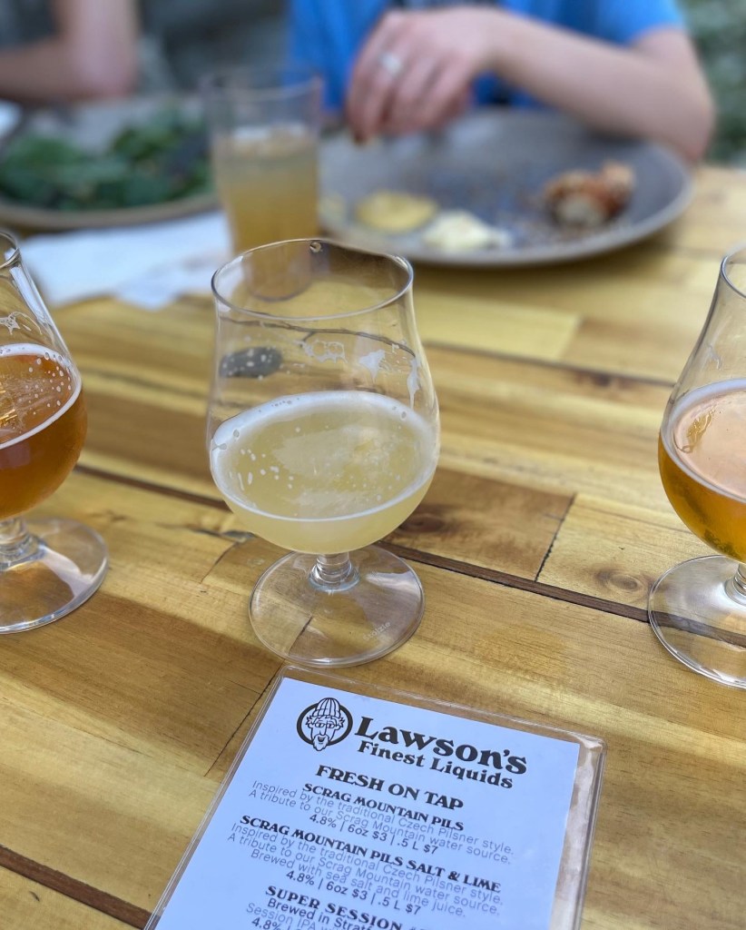 So, beer is kind of a big deal in Vermont. They make good stuff and we do our part by partaking when we’re in town (if not us, WHO?). This time, we hit up a mix of new (to us) spots and old favorites. The new: delicious Austrian-inspired beers and food at von Trapp Brewing (see above); big ol’ IPAs and tasty snacks in the warehouse-y Burlington Beer Co. taproom; and flights and bites (and Jenga!) at Bent Hill Brewery in Braintree, VT (which isn’t especially close to South Burlington, but was sort of on our way into town from Amherst). The tried and true: darn good beers and darn good pizza at next-door neighbors Fiddlehead and Folino’s Pizza; dude drinks and upscale pub fare for Dan and James at Zero Gravity; fresh, satisfying brews and food at Lawson’s Finest Liquids; and refreshing ciders with a side of lunch at Citizen Cider.