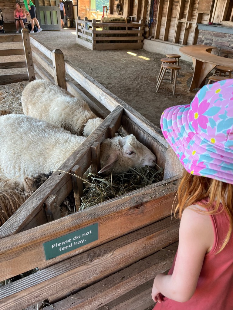 With tractor rides and turkeys and cheesemaking and cow-milking, Shelburne Farms is an awesome place for kiddos (and adults too, come to that). And since Fiona didn’t remember way back to our last visit there, it was extra fun to reintroduce her this time. Josie joined Dan, Fi and me on our excursion, braving a hot walk from the parking lot (we just missed the tractor!) that made Fiona extra grumpy. She cheered up once we reached the barn, though, where there were plenty of baby animals and fluffy bunnies to lift the spirits, plus games to play and stuff to climb. Dan, predictably, ran into someone he knew from San Francisco, Josie chose names for all the pigs and we managed to catch the tractor ride back when we were done. A successful visit all around!